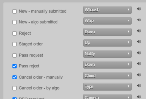 - Currently, the sounds for “New” and “Cancel” orders play for both manual orders and orders by automated tools. We have now separated the order actions between manual and algo to allow you to be notified when one or the other occurs. To implement this, the current two sound settings have been renamed to reference manual actions, and we have added two new sound settings for algo actions.