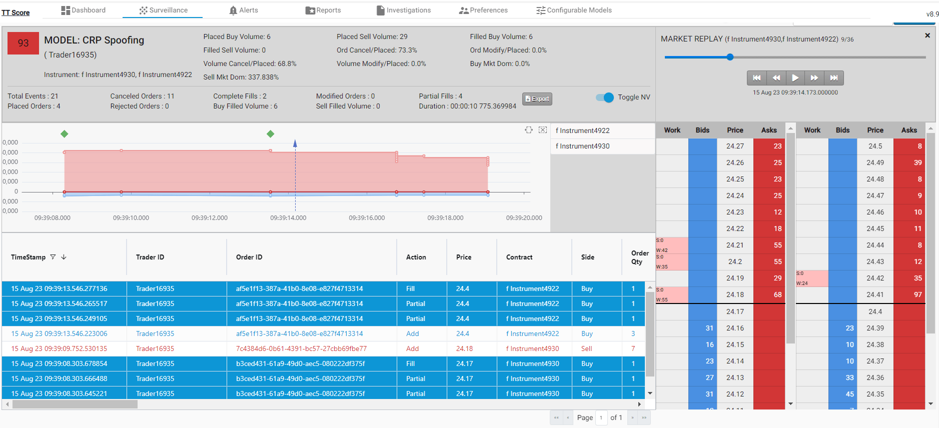 Dual Market Ladder Replay in TT Trade Surveillance.