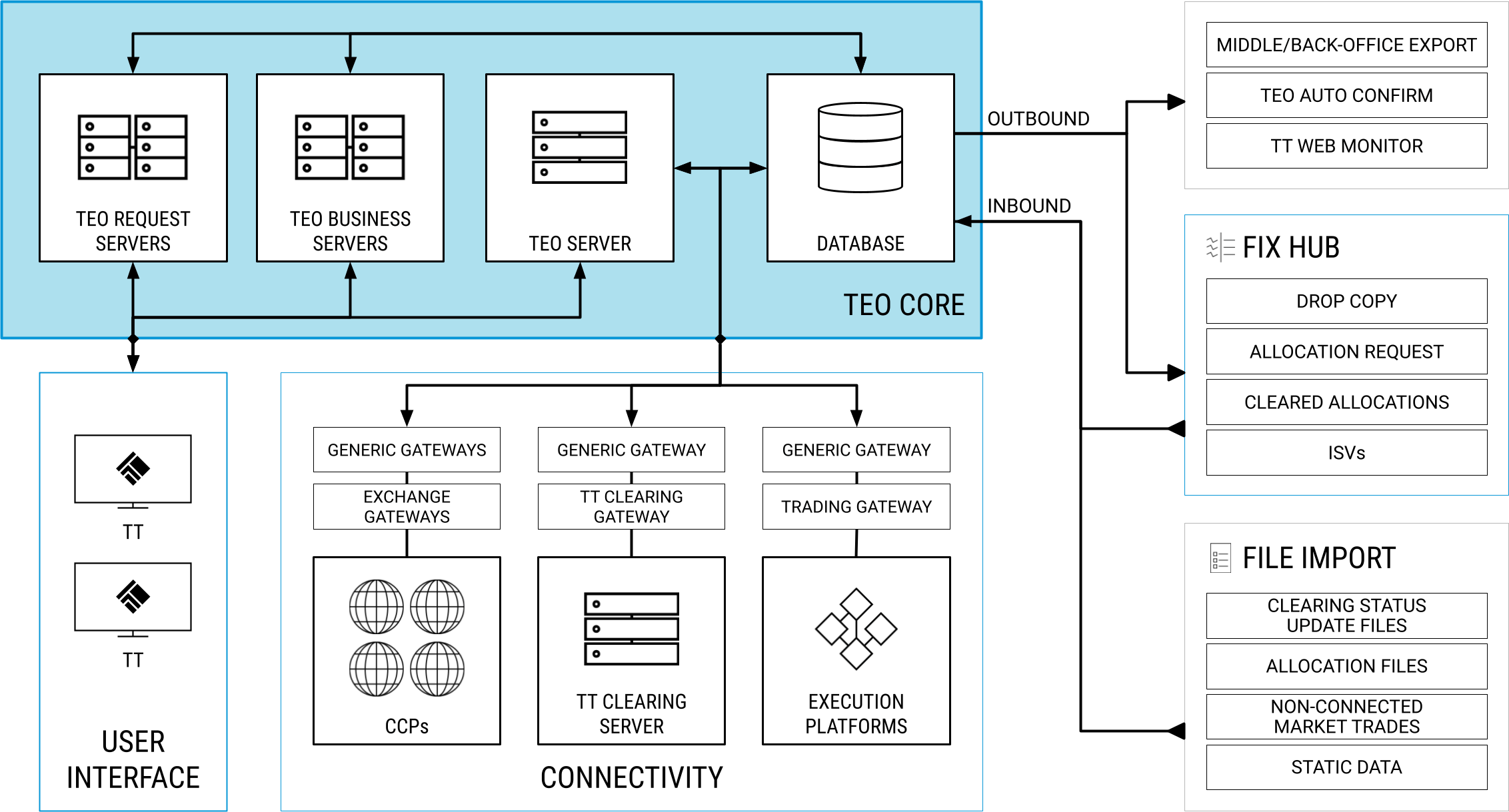 TEO fully integrates with TT OMS and TT Clearing, providing real-time, end-to-end tracking and monitoring of clearing status.